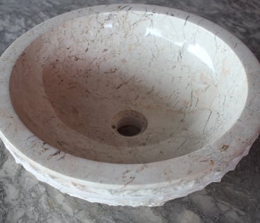 A Whirlpool Cream Washbasin is a unique and stylish bathroom fixture crafted from luxurious cream-colored marble. Its distinctive feature is its swirling, whirlpool-like design, adding a dynamic and artistic element to your bathroom.